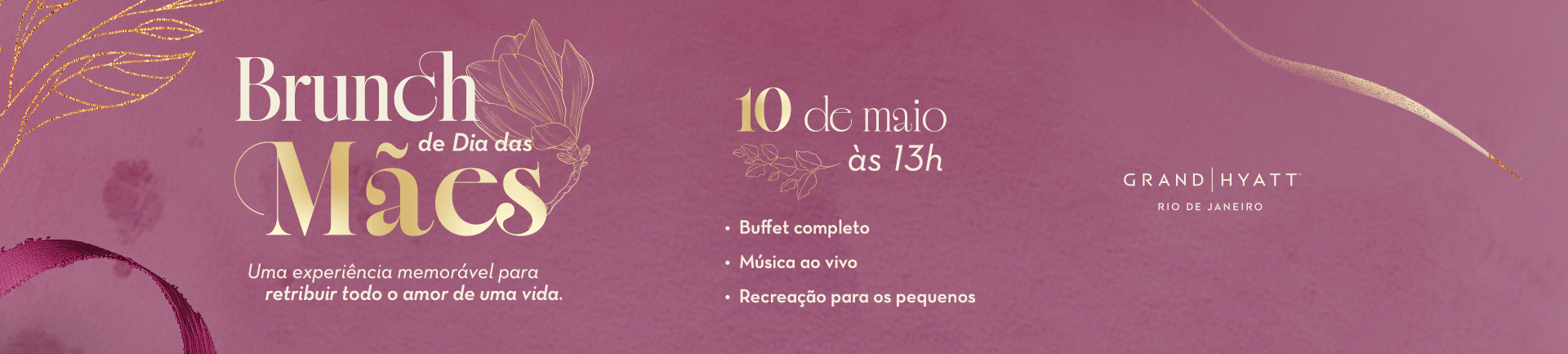Celebre o Dia das Mães em um Brunch Especial com o melhor da gastronomia e momentos únicos no Grand Hyatt Rio de Janeiro! Aproveite um buffet completo com saladas, queijos, frios, opções quentes, estações ao vivo e uma incrível mesa de sobremesas, além de espumante, vinhos tinto e branco, cerveja e bebidas não alcoólicas liberadas.