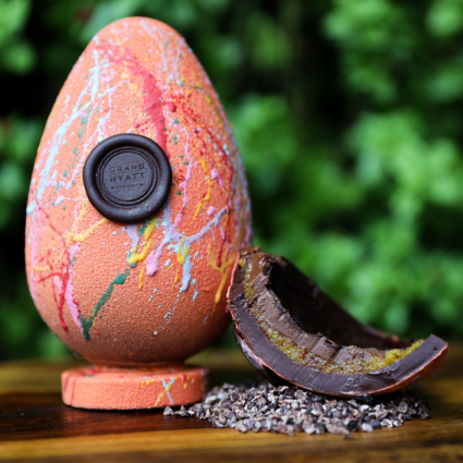 Produzido pela confeitaria do Grand Hyatt Rio de Janeiro e idealizado pela chef Paula Lopes, este Ovo de Páscoa de 350g é uma experiência refinada desde a primeira mordida. Produzido com chocolate belga 63%, seu recheio revela camadas que irão supreender o paladar, equilibrando a acidez da geléia artesanal de laranja com baunilha e a cremosidade da ganache de café.