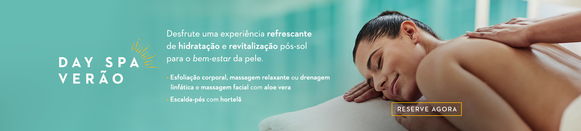 O Day Spa Verão é uma experiência sensorial de 2h50, elaborada para nutrir, regenerar e revitalizar corpo e mente. Inspirado na energia vibrante do verão, combina aromas refrescantes, texturas suaves e técnicas terapêuticas que cuidam da pele e renovam os sentidos.