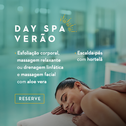 Day Use incluso: sauna seca, Fitness Center, piscinas interna climatizada e externa, além de 3h de estacionamento com manobrista.